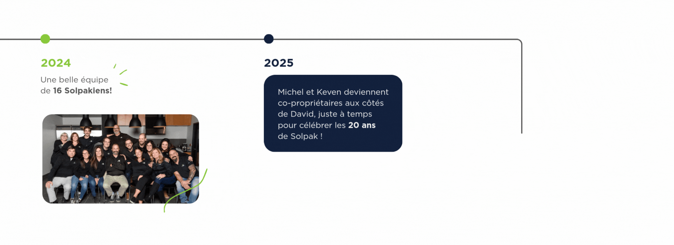 Les membres de l’équipe Solpak sont contents d’y travailler, ils ont le sentiment de se développer personnellement et professionnellement. De plus, leur compensation totale se retrouve au-dessus de la moyenne du marché. Ils et elles respirent et vivent les principes de Solpak: